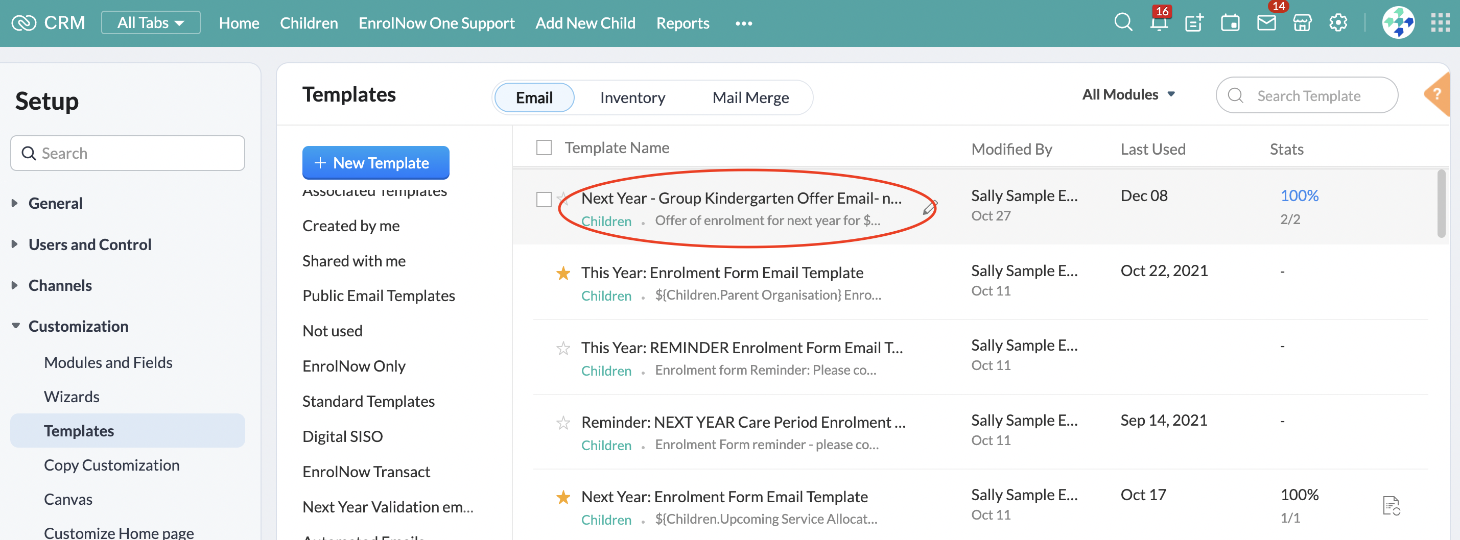 Step 1: Navigate to the email templates section of EnrolNow and locate the email template you wish to edit: Accessing Email Templates - To Edit, Clone or Create