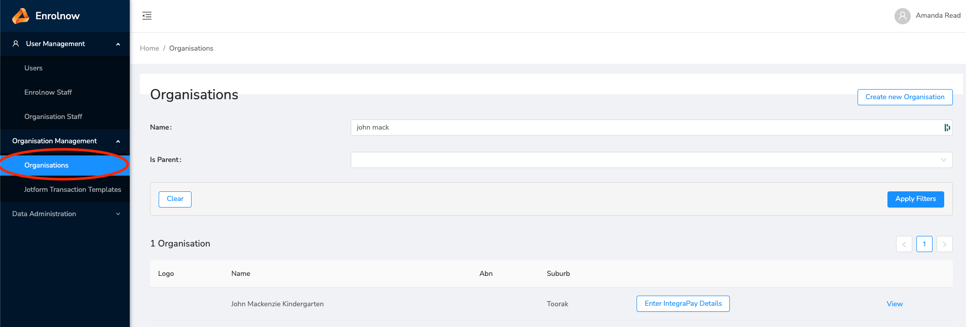 - Go to https://transact.enrolnow.com.au/admin/ and check that the Organisation details have synced. Sync runs every 10 minutes.