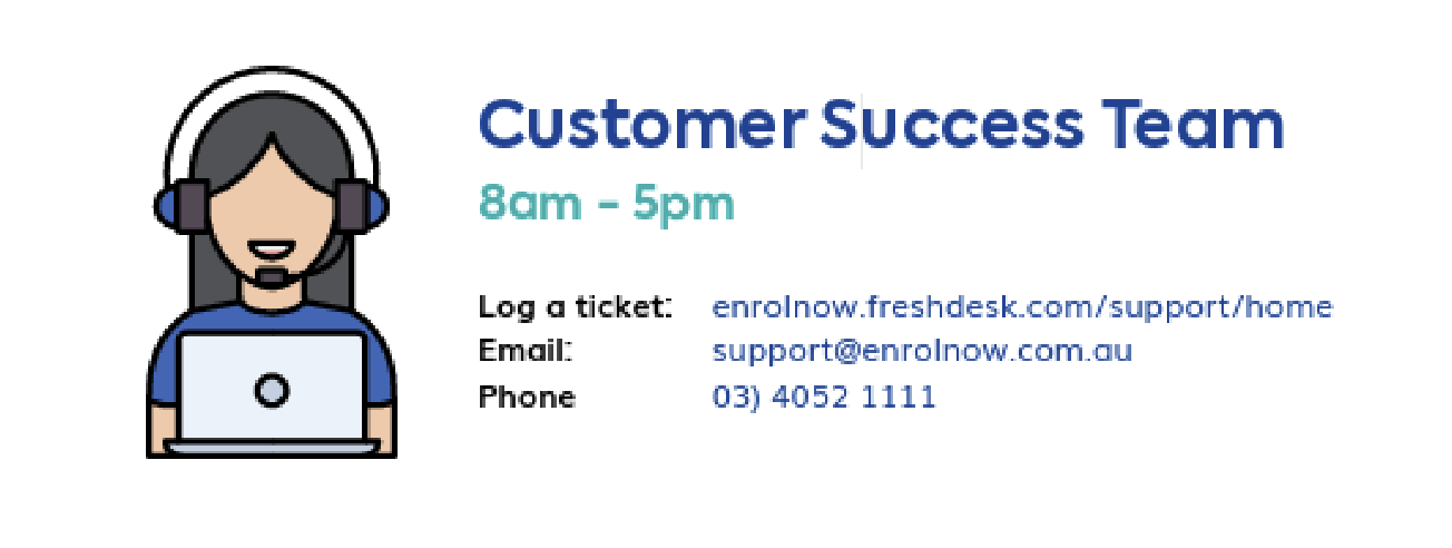 To ensure the fastest and most consistent service, please submit a ticket via EnrolNow Support using the Support tab in EnrolNow or via your EnrolNow Support portal.
